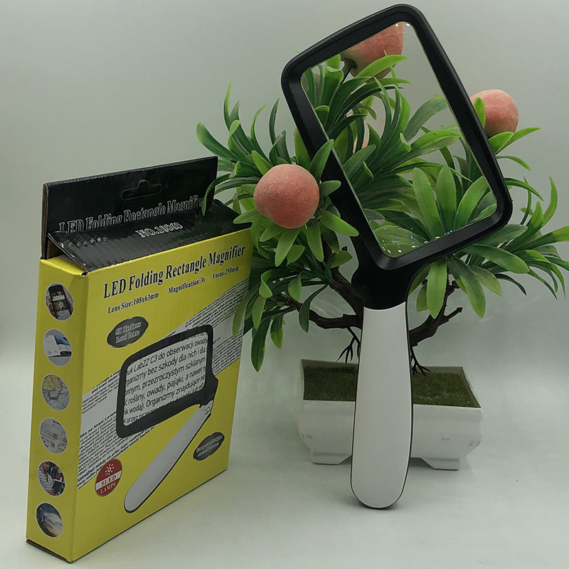 結晶輝工場10863矩形角鏡折り畳み可能な大面積手持ち読書3倍5個ledランプ拡大鏡