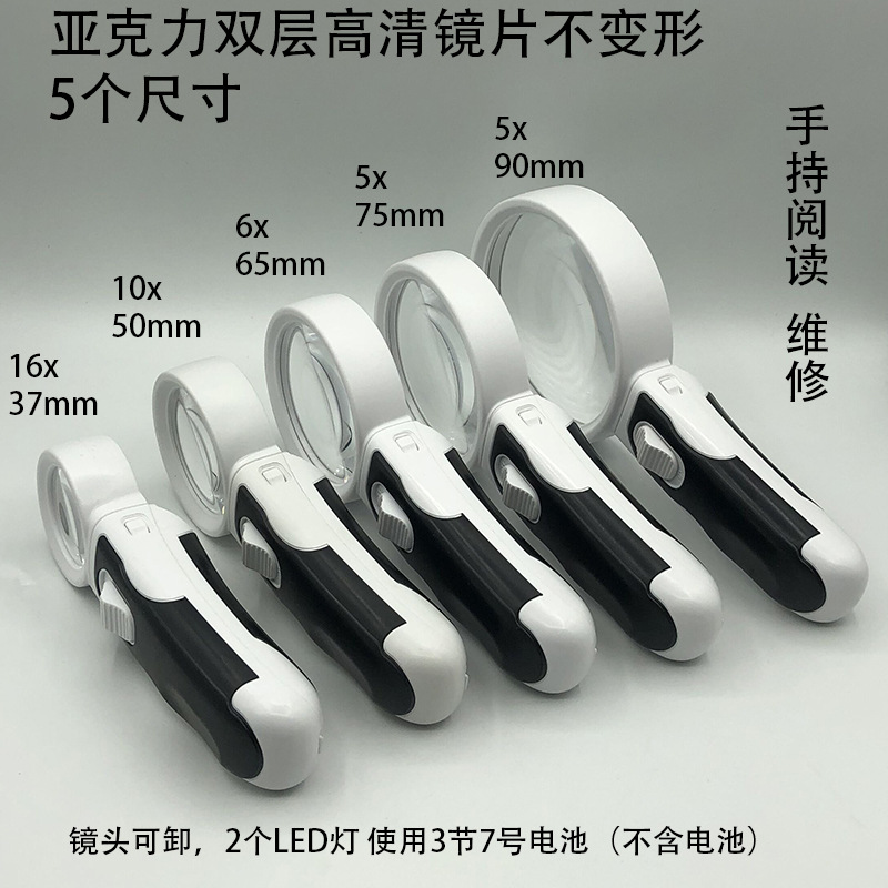 手持ちライト付きhd老人読書アクリルレンズ6h-2-3-4-5c拡大鏡usb充電/電池