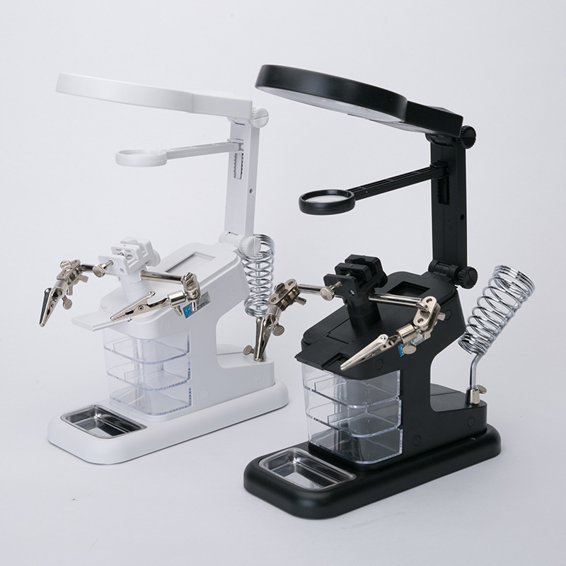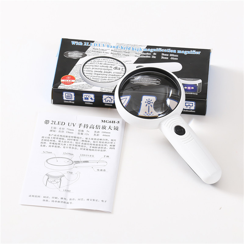 クリエイティブラケット手持ちルーペダブルミラー読書75mm三ledライト光学機器690リターンガラスレンズ