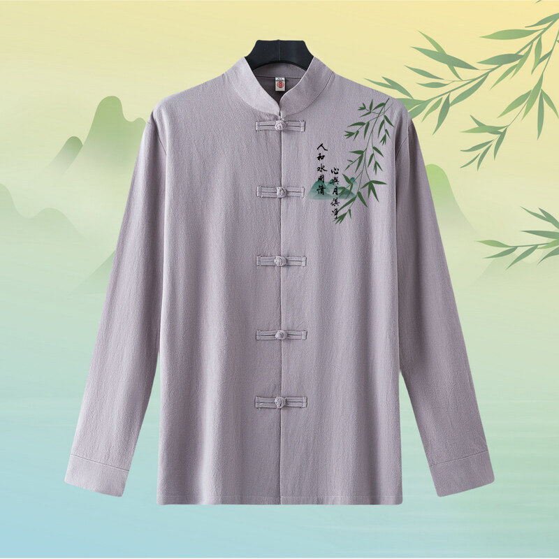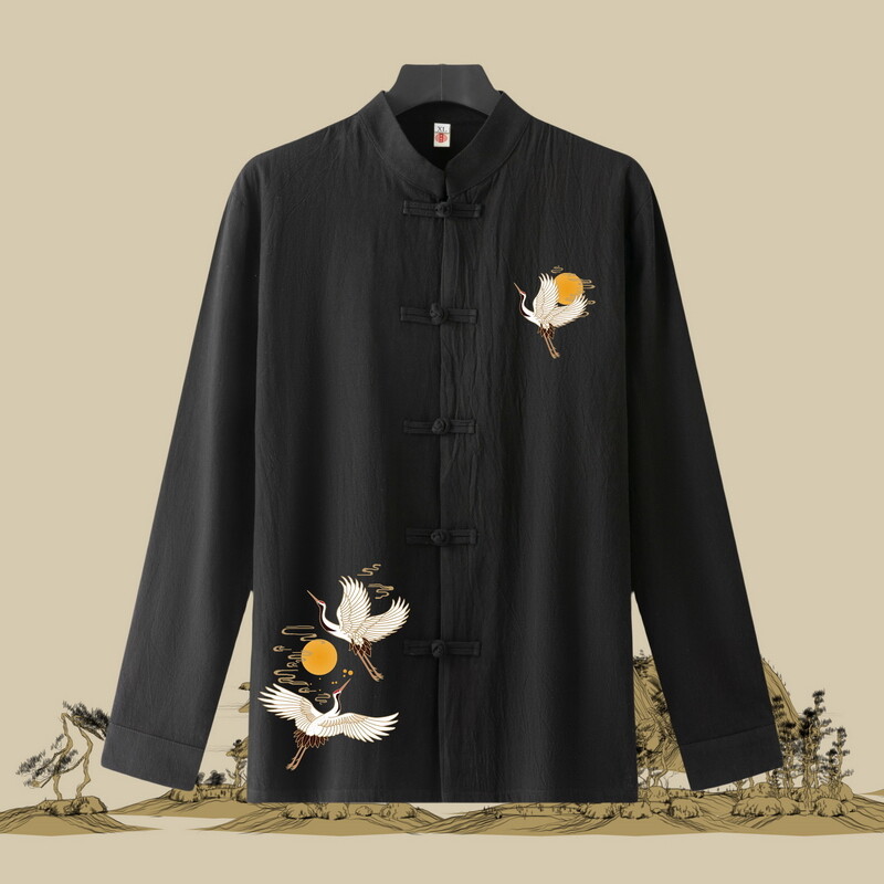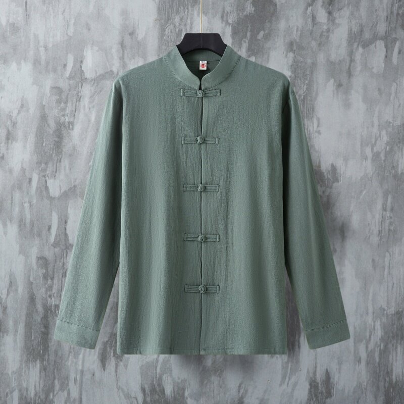 唐装シャツ男性長袖国潮打底シャツ対襟小衣ゆったり立襟中国風寸シャツ男性大サイズ