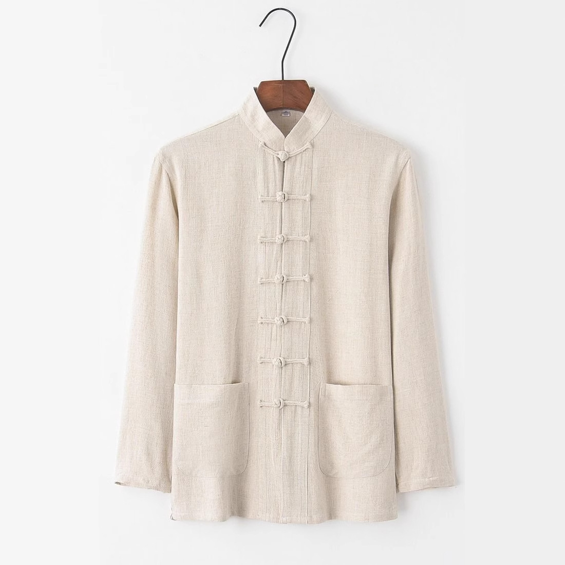 中国風唐装男中高齢者夏長袖シャツ綿麻漢服中山装亜麻カジュアルおじいさん服