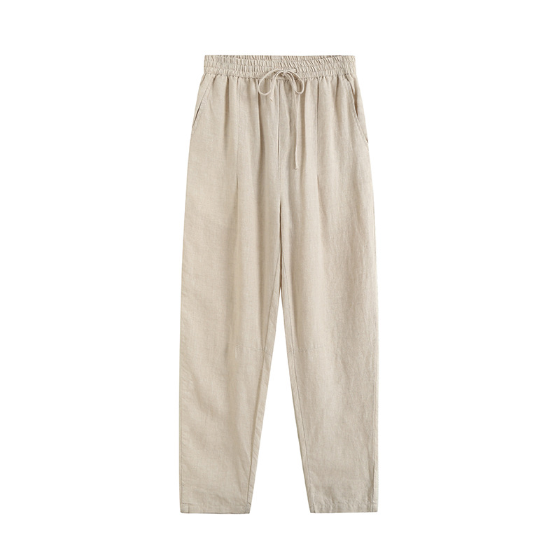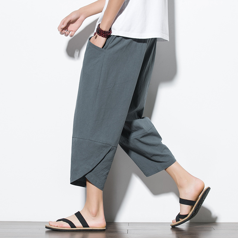 七分ズボンの男性の夏の薄い砂浜の半ズボンの亜麻の7分のズボンの男性の綿麻のカジュアルな中のズボンの大きいサイズの男性のズボン