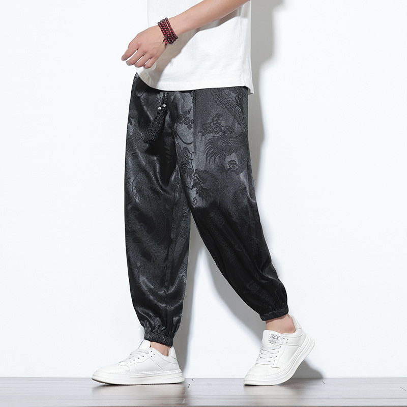 龍紋ジャカード新中国式ズボン男性夏薄金九分ズボン中国風束足灯籠ズボン氷糸カジュアルズボン