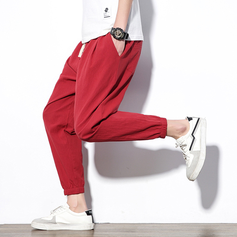 ズボンの男性の春夏の綿の麻のスポーツズボンのゆったりした束の足の亜麻のズボンの夏のハーレムのズボンの春の男性のカジュアルなズボン