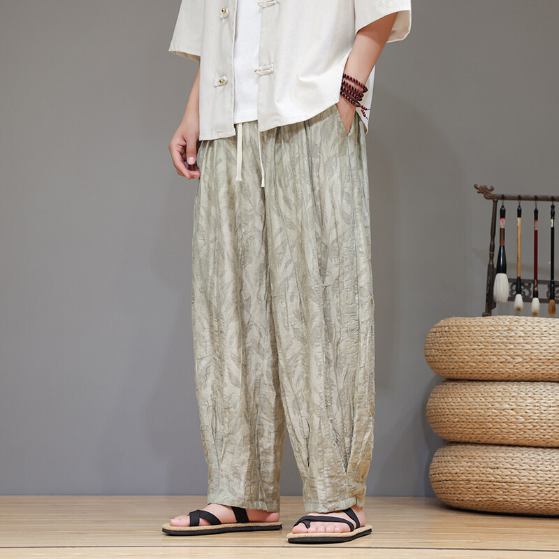 夏の薄い中国風ジャカードズボン男性新中国風広脚提灯長ズボンゆるい大サイズ天糸カジュアルパンツ