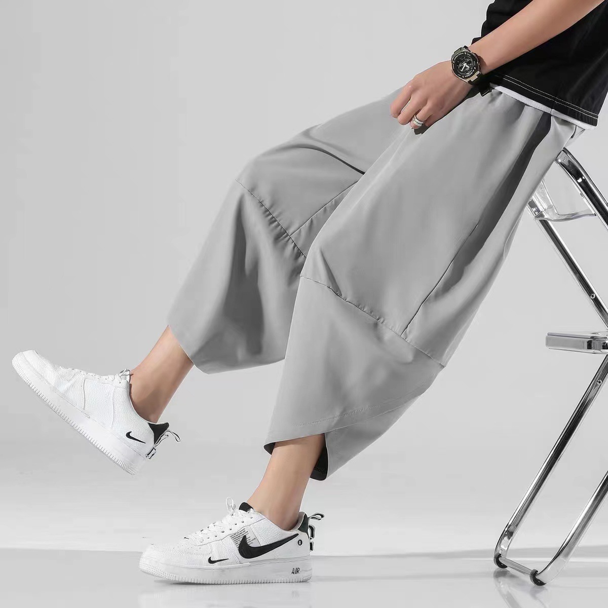 氷糸速乾七分ズボン男夏垂感広脚大サイズゆるいカジュアルハーレムズボントレンドデブ大根ズボン