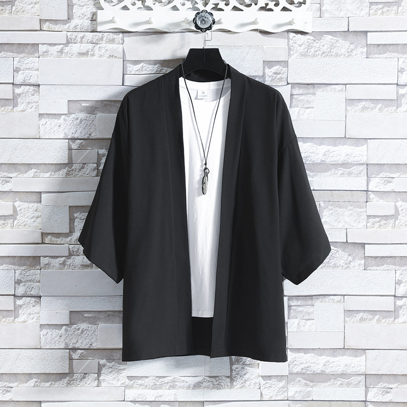 夏の薄手中国風氷糸日焼け止め服道着漢服男性カジュアル半袖七分袖カーディガンコート潮