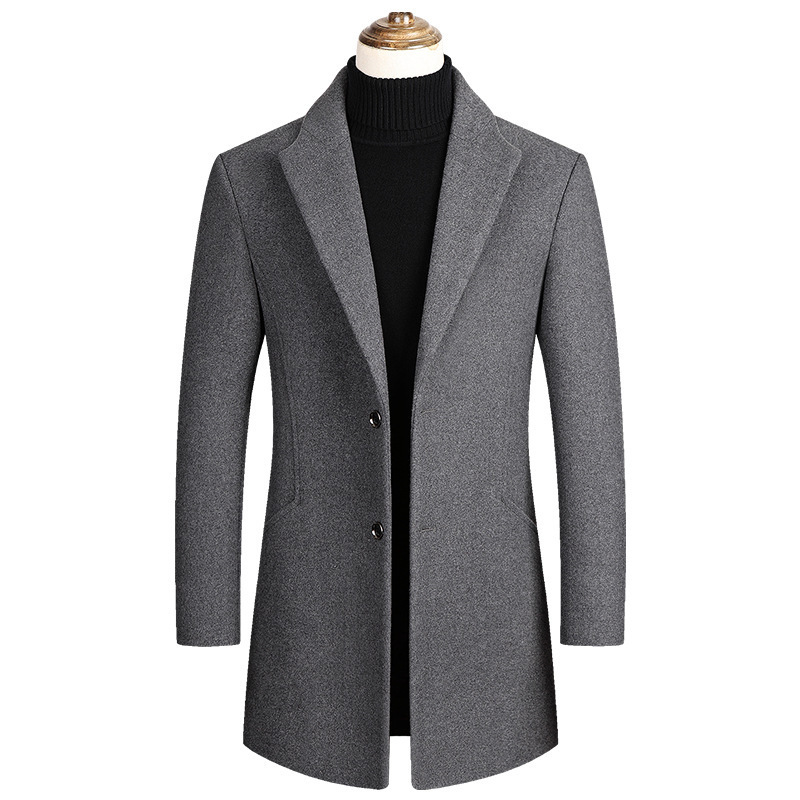 外国貿易の秋冬の中で青年の毛のコートの男性は綿の中で長いタイプのスーツの襟のコートの中年のラシャのお父さんをプラスします。