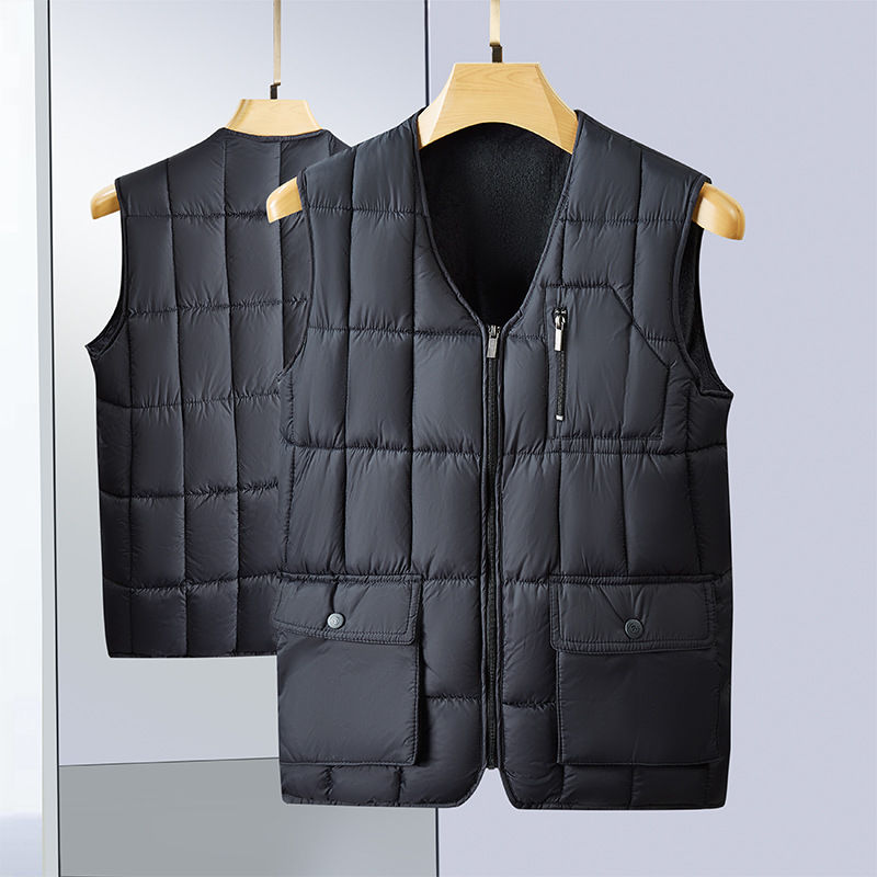 秋冬の中高年の馬甲の男性は厚い保温のコートをプラスして大きいサイズのゆったりしているお父さんはボタンのベストの肩を詰めます。