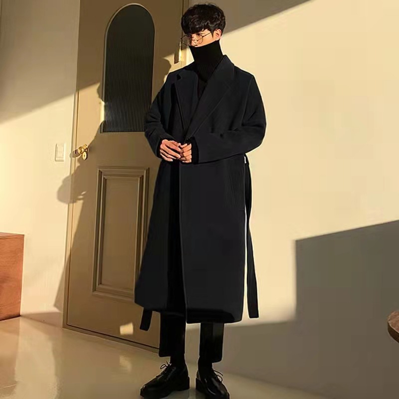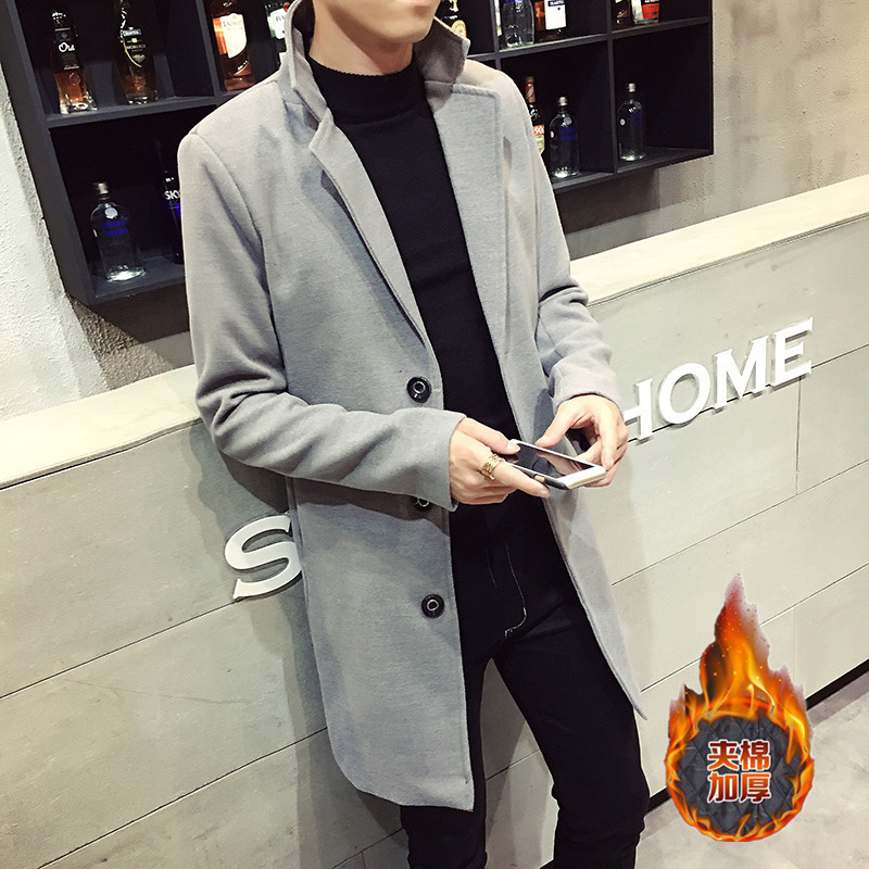 秋冬の男性は毛を厚くしていますね。コートの中の長さのラシャコートの韓国版はゆったりしています。