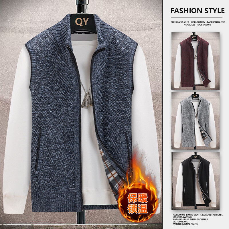 秋冬のベルベットと厚手の男性コートの新型セーター韓国版修身トレンド上着青年ニットジャケット
