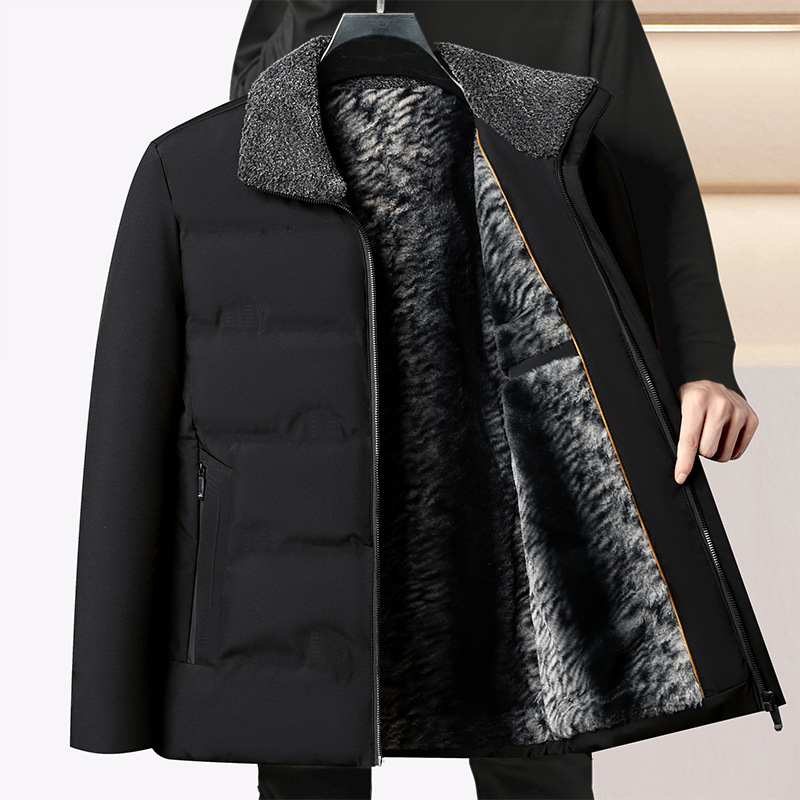 中高年の冬服の綿入れの男性のお父さんはベルベットを着て厚いコートを着ています。