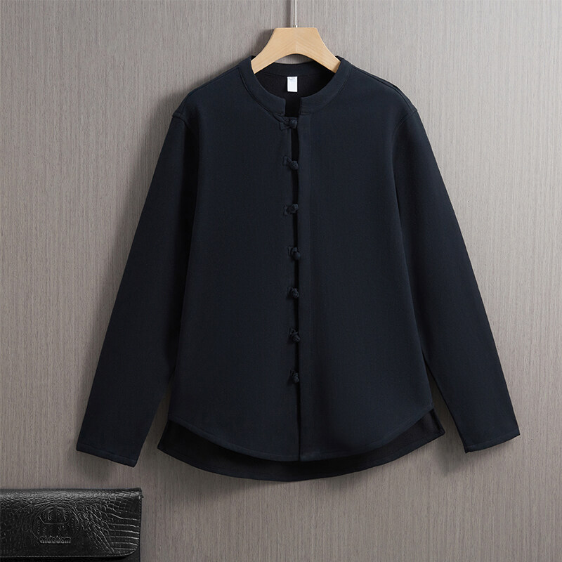 秋冬の中国風の唐の服とベルベットの厚い綿麻の長袖のシャツの男性の復古の中国式のボタンの保温のシャツ