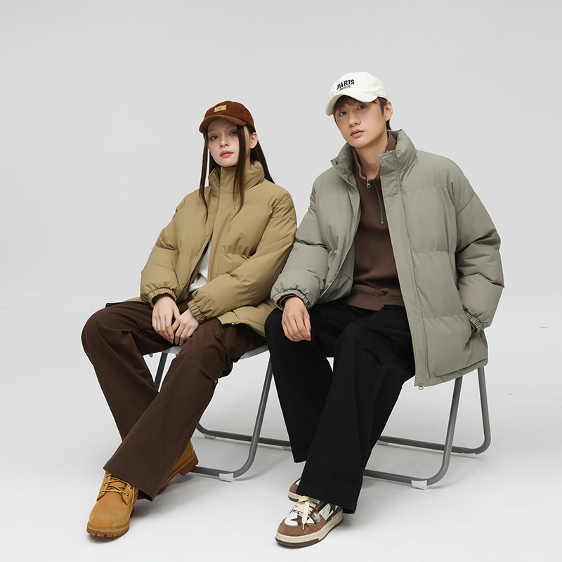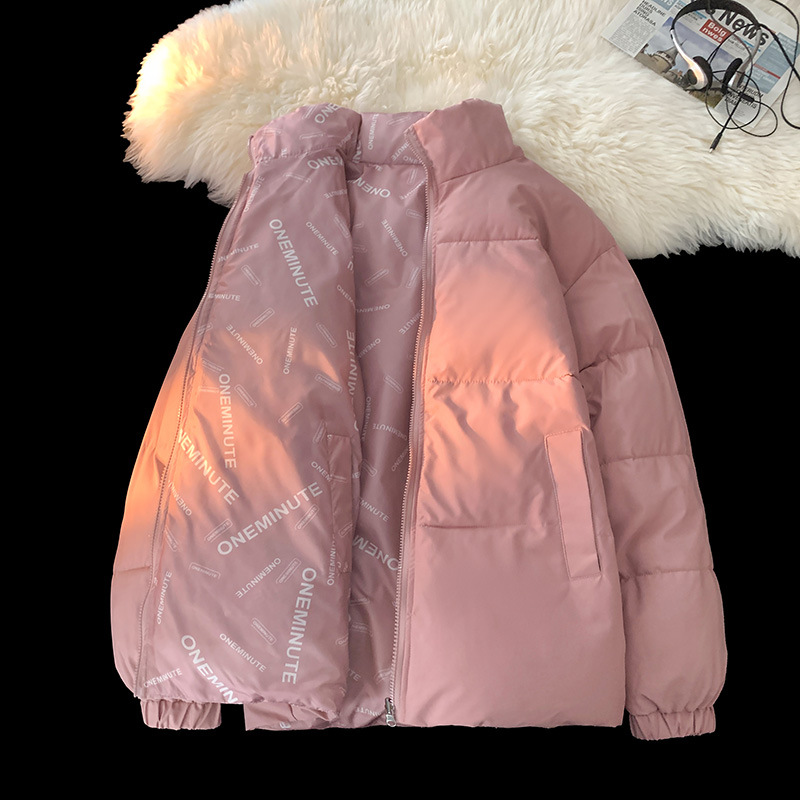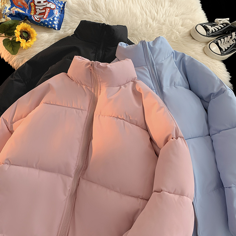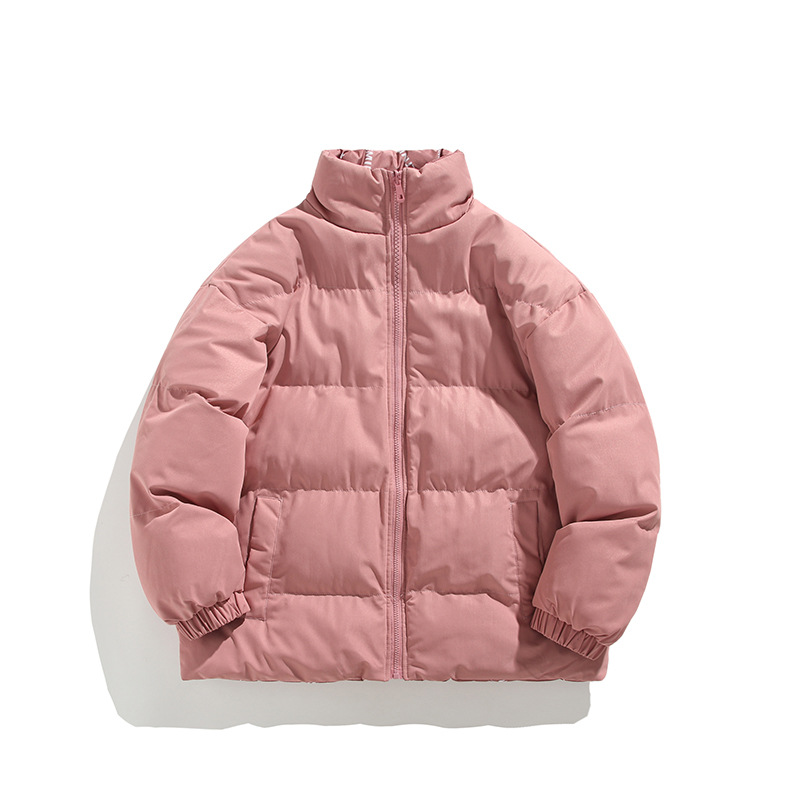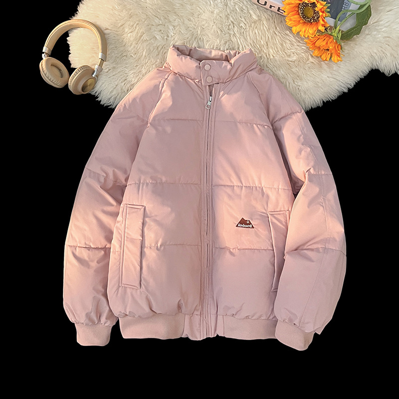 ピンクの立襟綿入れの女性の冬のコート2024の新しい純色のファッションブランドのゆるい綿服学院風保温綿入れ