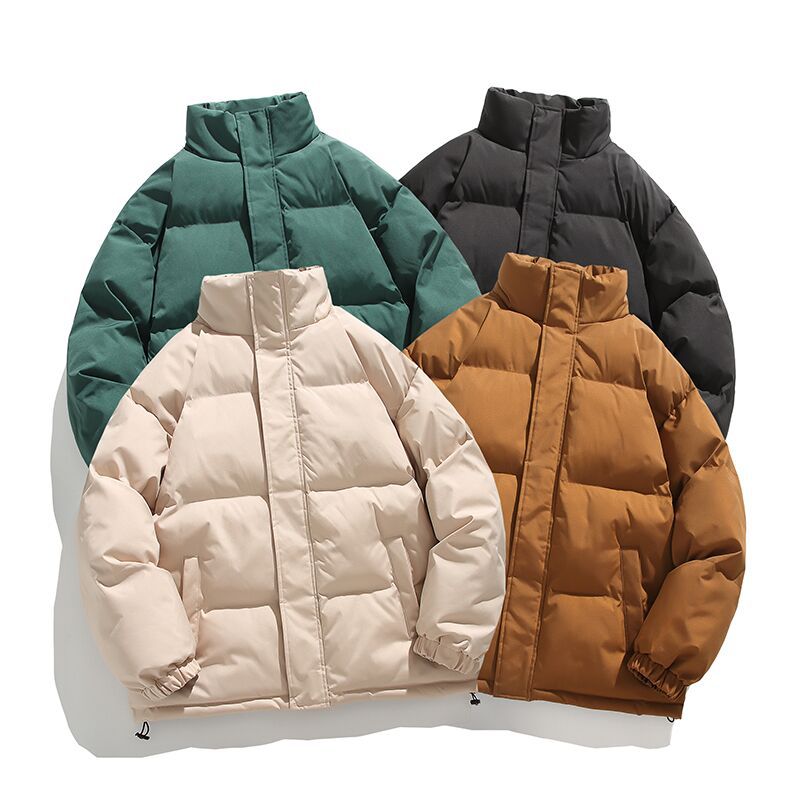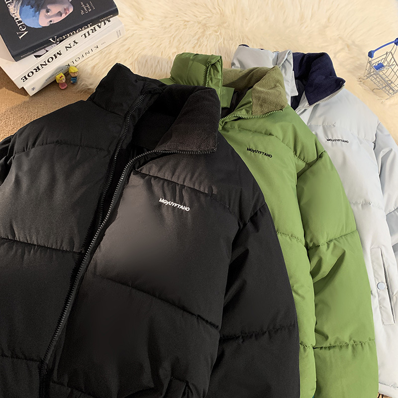 純色立襟綿服男2023冬の新型韓国版ゆるい保温綿服カジュアルなパン服グリーン