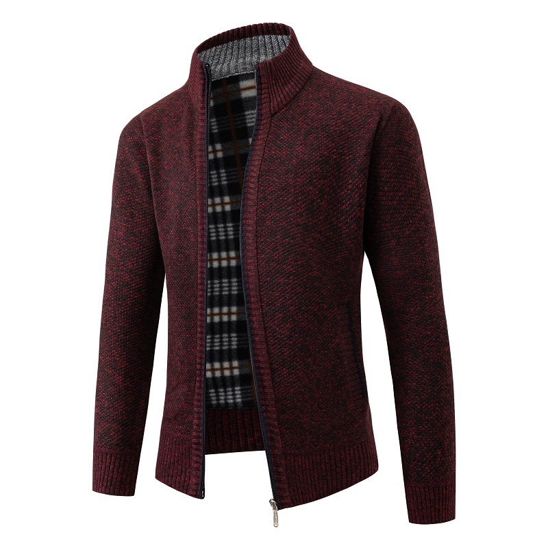 クロスボーダーのカジュアルな純色の半ファスナーのセーターとベルベットの厚い秋冬のニットの男性服のファッションのカーディガンのコートの男性服