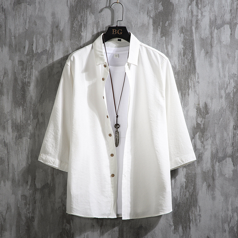 夏の半袖の薄い通気性のある純色の亜麻シャツのコートがゆったりしています。
