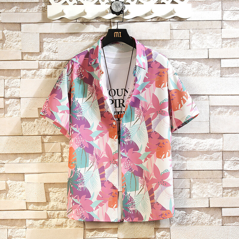 ハワイアンスタイル半袖花柄シャツメンズ夏カジュアルタイ旅行服トレンディなカップル休暇ビーチスーツ
