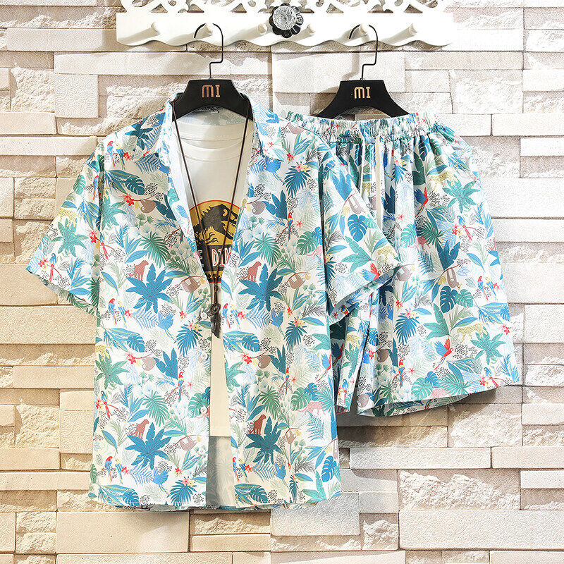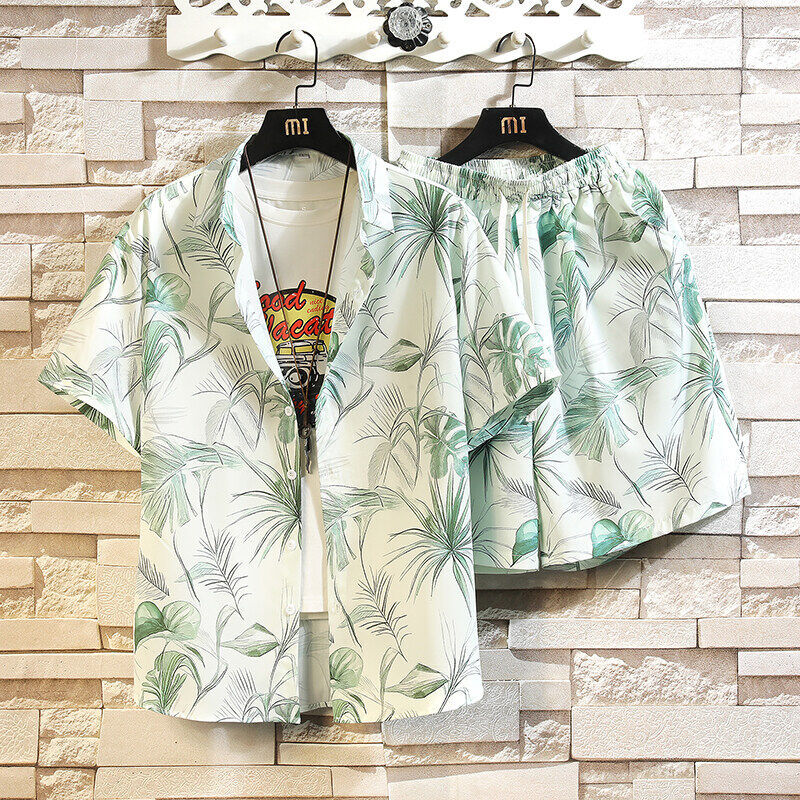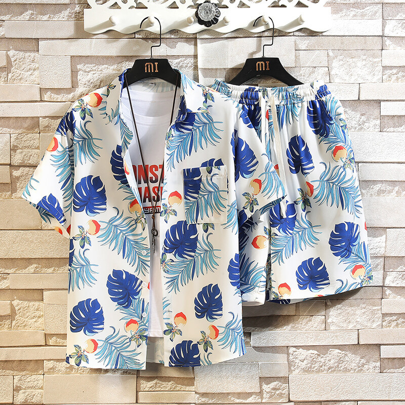 海辺の休暇ビーチパンツメンズ海南島服三亜旅行ハワイ港スタイルハンサム半袖花柄シャツスーツ