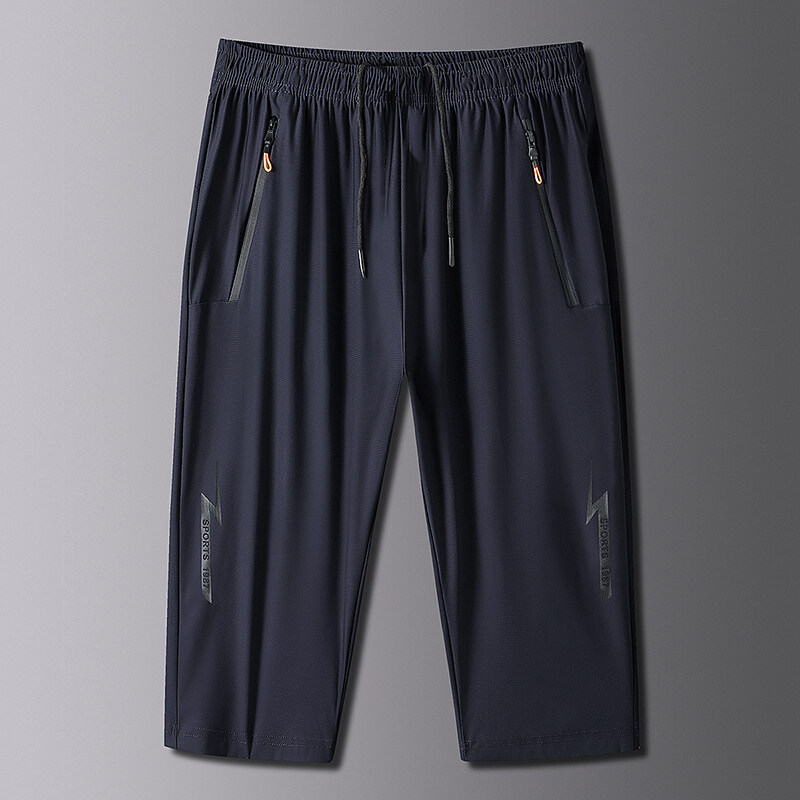 夏の新スタイルアイスシルククロップドパンツメンズ薄手ルーズカジュアルスポーツパンツストレートミッドパンツメンズ速乾ショートパンツ