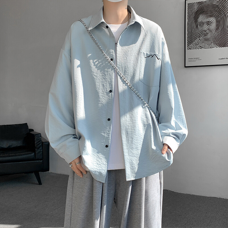 氷糸長袖シャツ男性春2025新作ファッションブランド高級感シャツ青少年ゆるい百合上着
