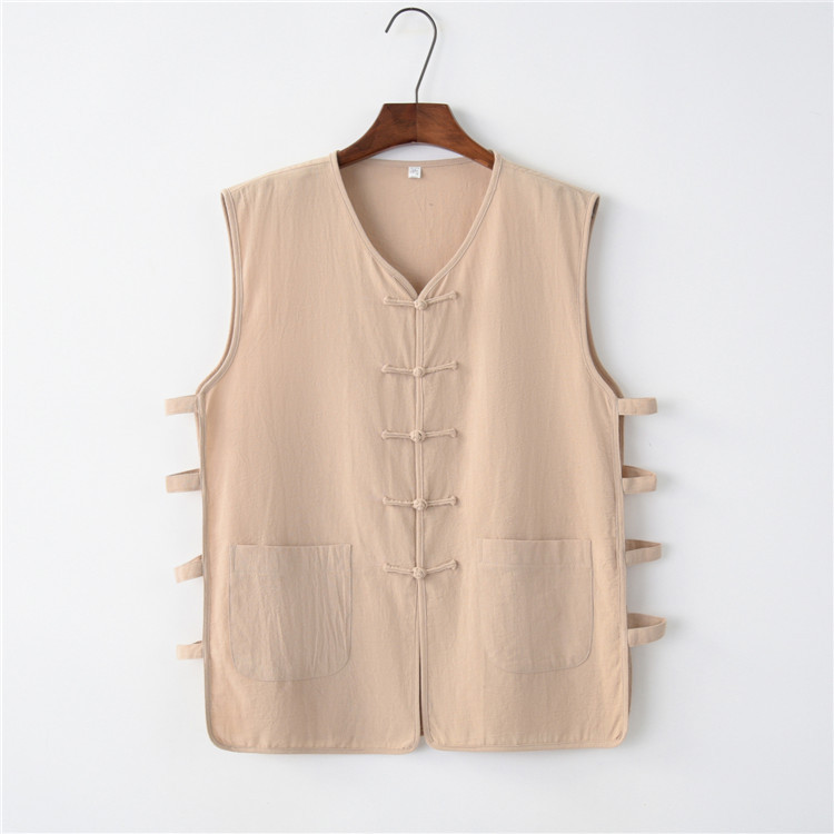 夏の中国風綿麻馬甲汗シャツ新中国式唐装男カン肩ベスト亜麻盤ボタン袖なし老人シャツ