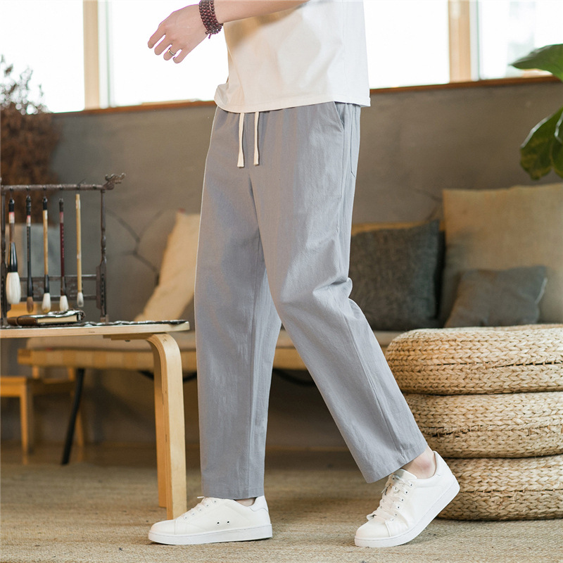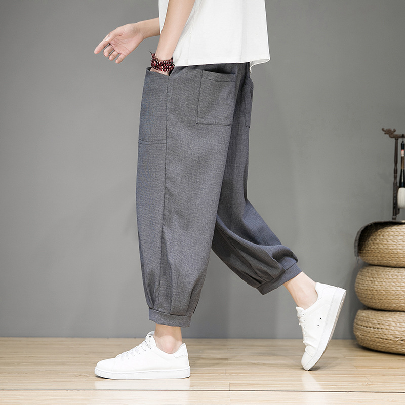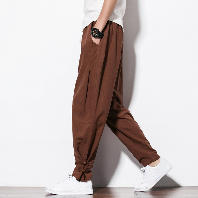 春夏中国風メンズリネンパンツ男性古風綿麻ハーレム