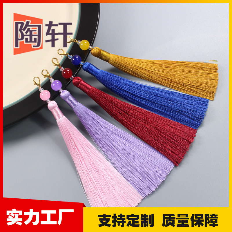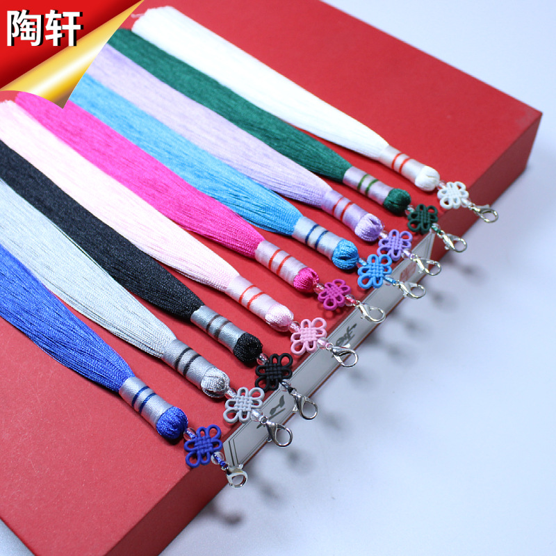 長型19cm雲錦中国結流蘇穂子付きロブスターバックル漢服圧襟ストラップ提灯ストラップ卸売り