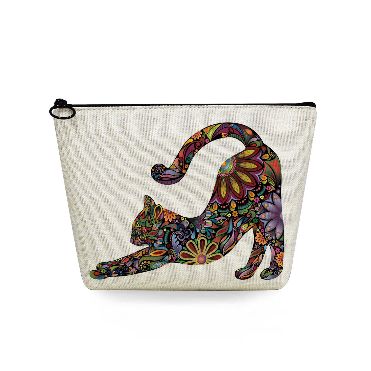 新型携帯小型旅行洗面収納バッグ多機能学生筆袋雑物猫プリント化粧バッグ女