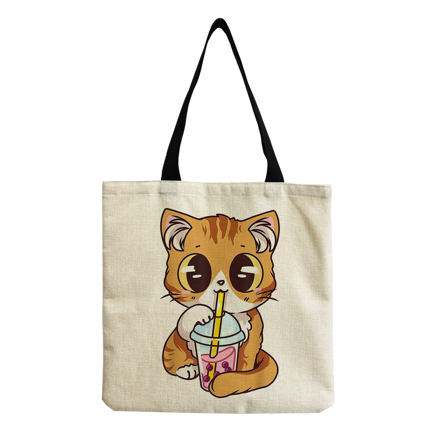 メーカー直販猫プリントハンドバッグ大容量再利用可トートバッグ個性創意ショルダーバッグ