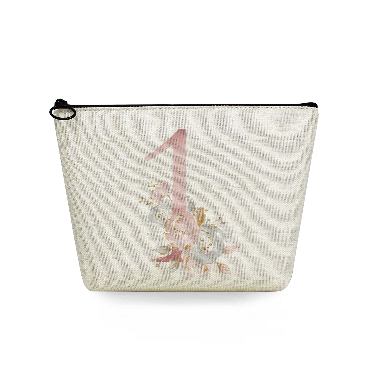 卸売りのピンクのアルファベットのプリントの化粧袋のアイデアの漫画の収納袋は印刷できます。