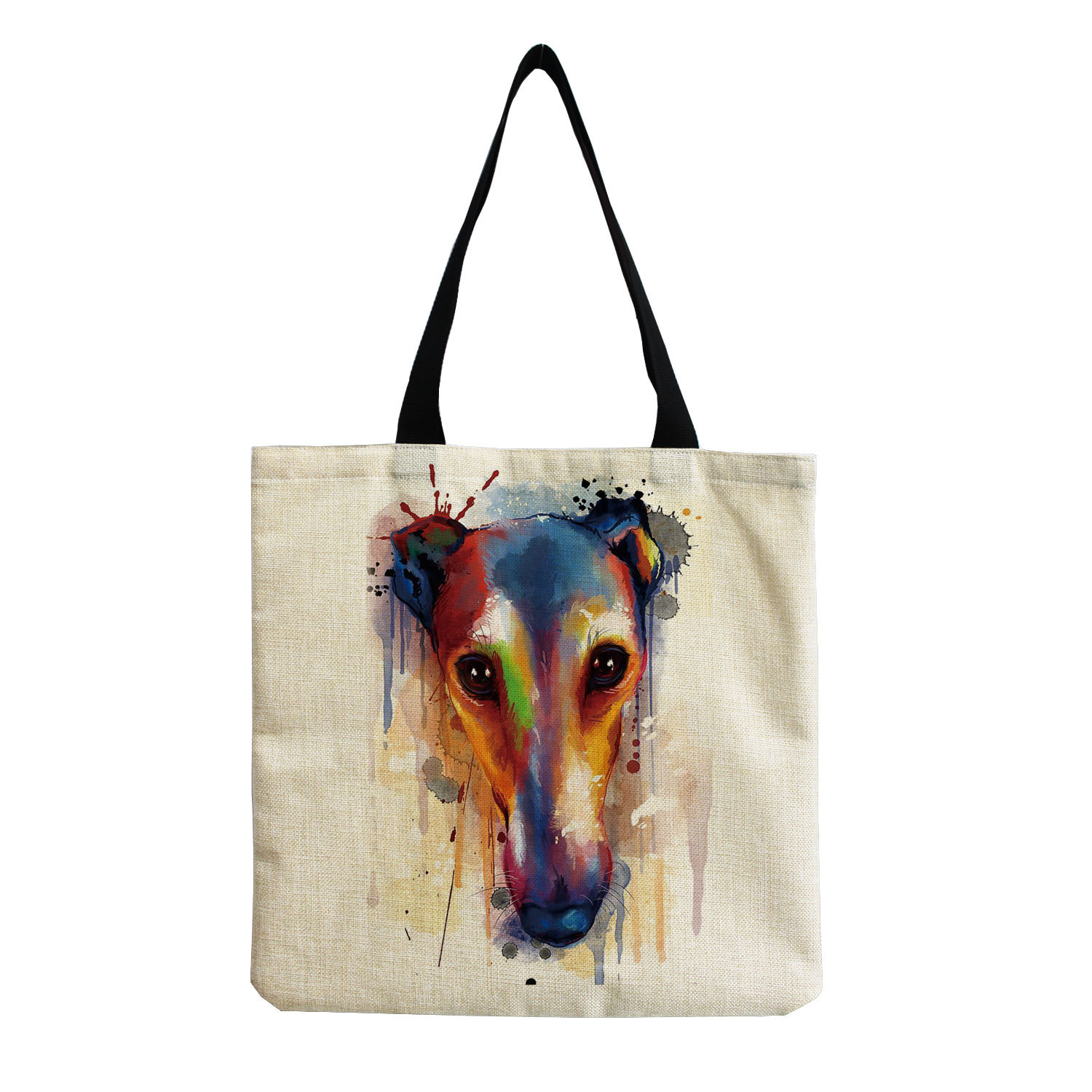 2022クリエイティブファッション女性の手提げ袋はレジ袋を再利用して、灰色の猟犬プリントのショルダーバッグを作ることができる