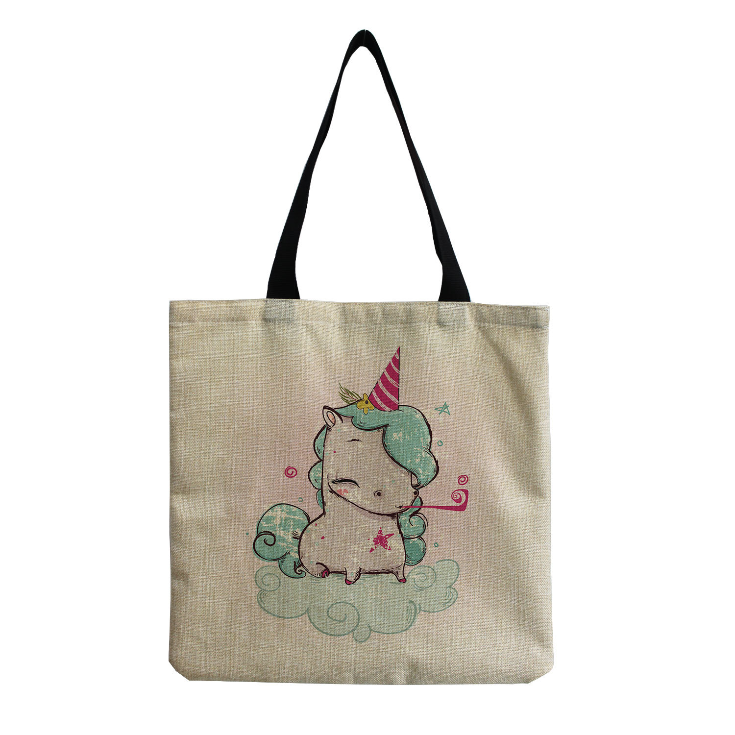 新商品発売片肩手提げ再使用可能布バッグピンクかわいいフラミンゴプリント綿麻ショッピングバッグ
