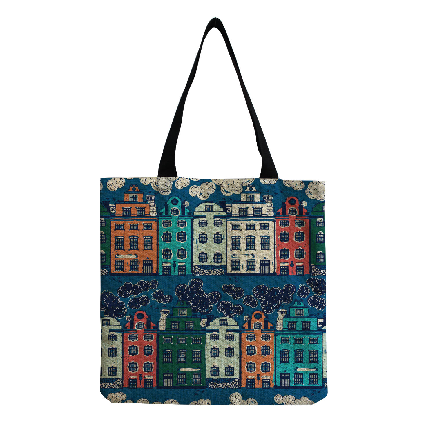 新商品のファッションモデルは、片肩で手に入れることができ、布バッグの不規則なグラフィックプリント綿麻のショッピングバッグを再利用することができます。