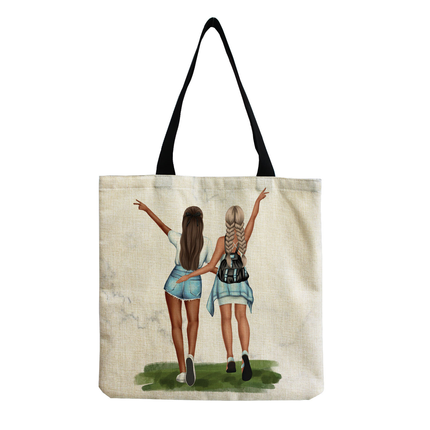 2022スポット卸売り手提げ袋折り畳み可能多機能レジ袋創意新姉妹プリントショルダーバッグ
