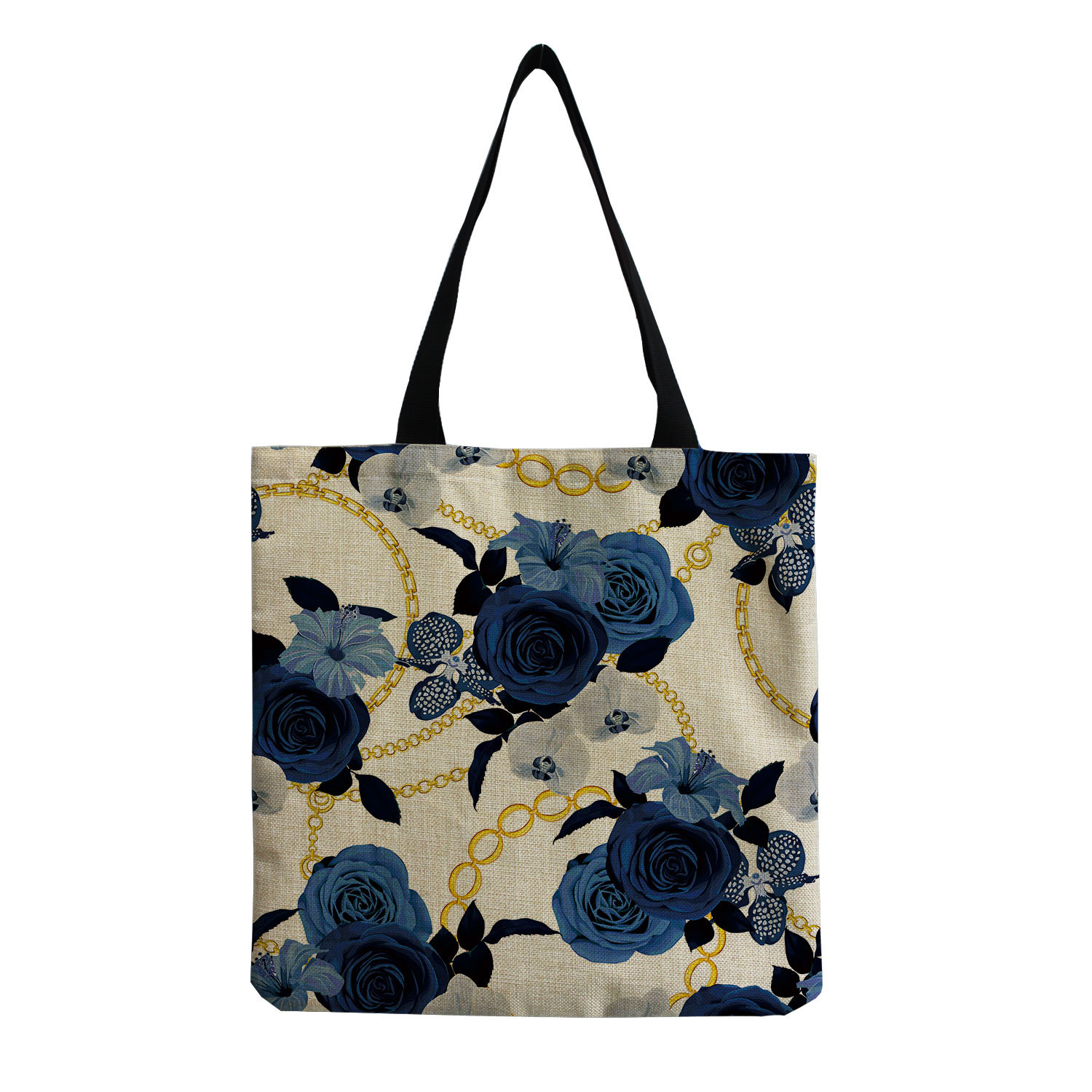 新商品のファッションの神秘的な青いバラのシングル肩の手提げは布の包みの情熱的なバラの綿麻のショッピングバッグを再利用できます。