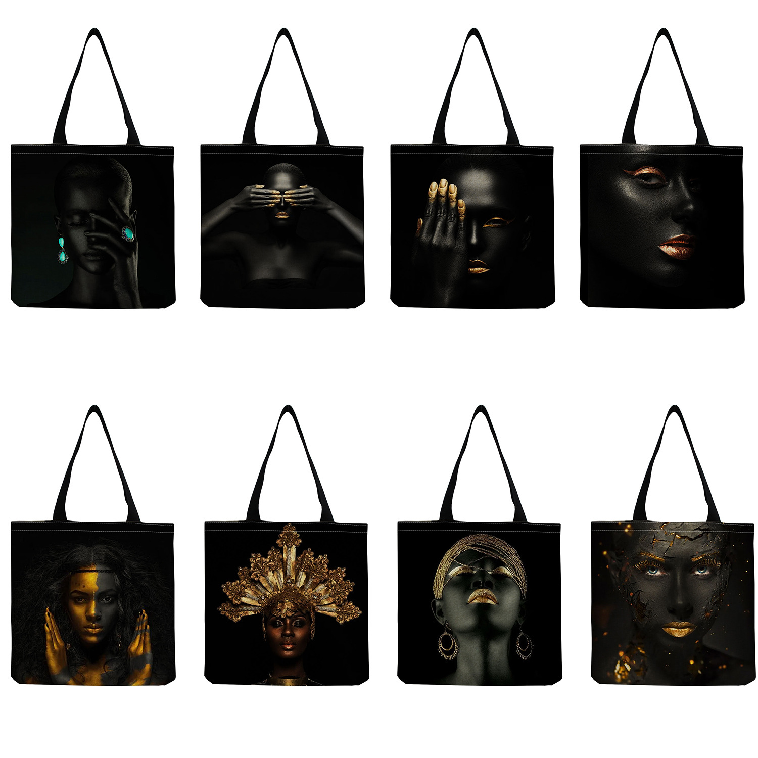 新型大容量携帯ハンドバッグ現物卸売りビーチバッグ黒地ファッション女性プリントショルダーバッグ