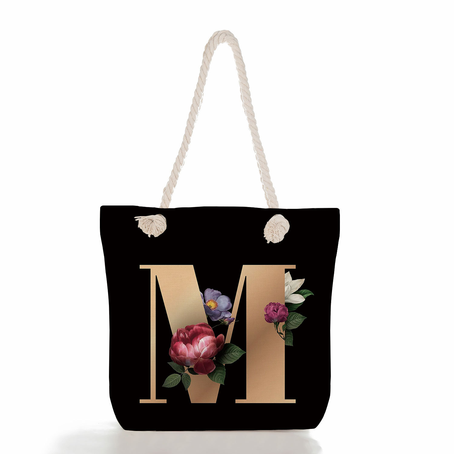 2022百合創意ファスナー手提げ袋携帯ビーチバッグファッションモデル黒地アルファベット花プリントショルダーバッグ