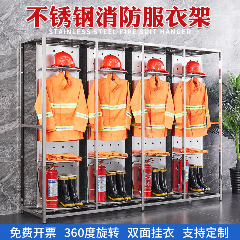 ステンレスメーカー両面戦闘服消防服ハンガー消防士救助服消防ラック装備回転ラック