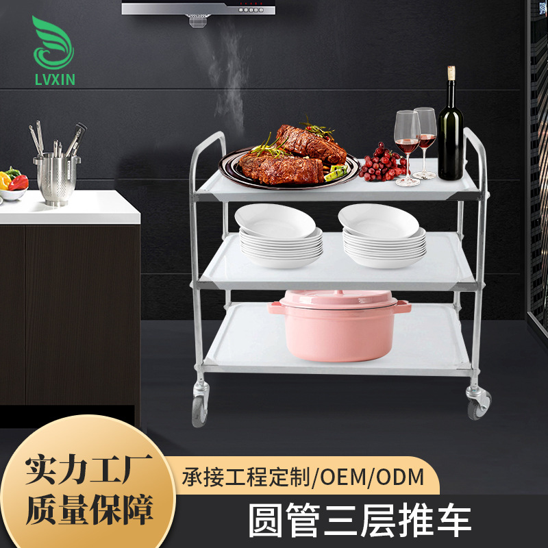 メーカー直供ステンレス手押し車レストランホテル菓子茶水送食車三階手多目的カート