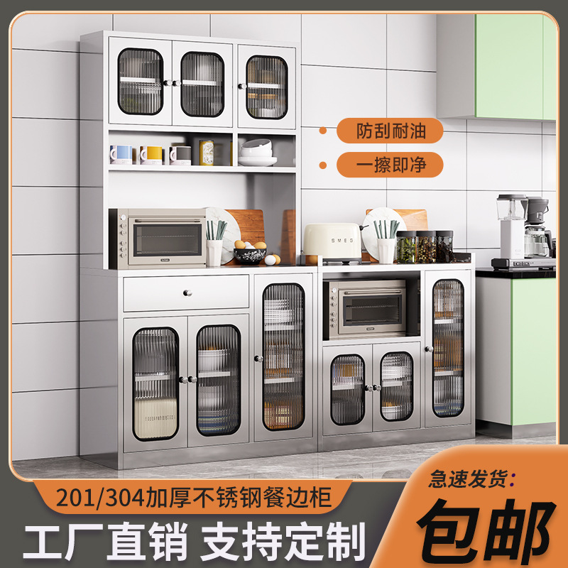 304ステンレスキッチンサイドキャビネット食器棚多機能物置キャビネット鍋具電子レンジ収納ロッカー