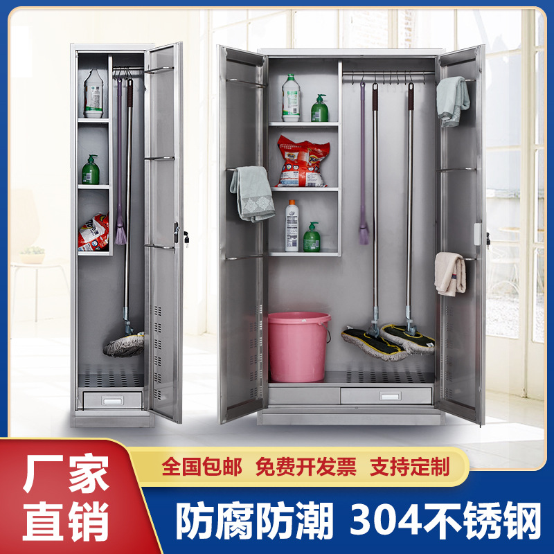 ステンレスの清潔なタンスの学校の衛生キャビネットの清潔なタンスの教室のベランダのモップの掃除道具のロッカーの収納棚