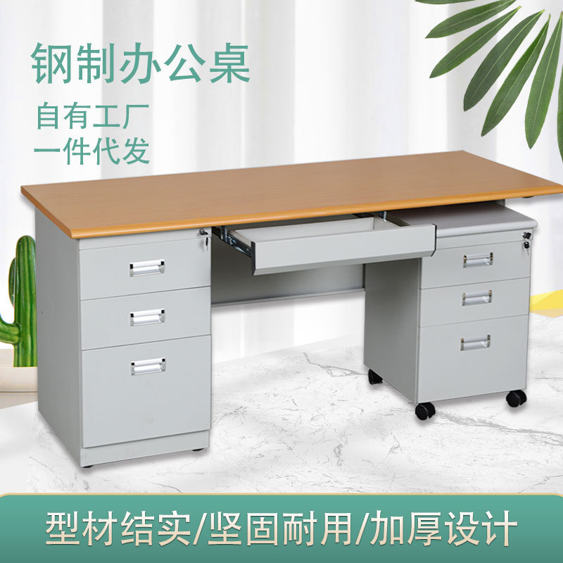 スチール製デスク家庭用コンピュータデスク一人位シンプル事務机引き出し付きオフィススタッフ財務テーブル