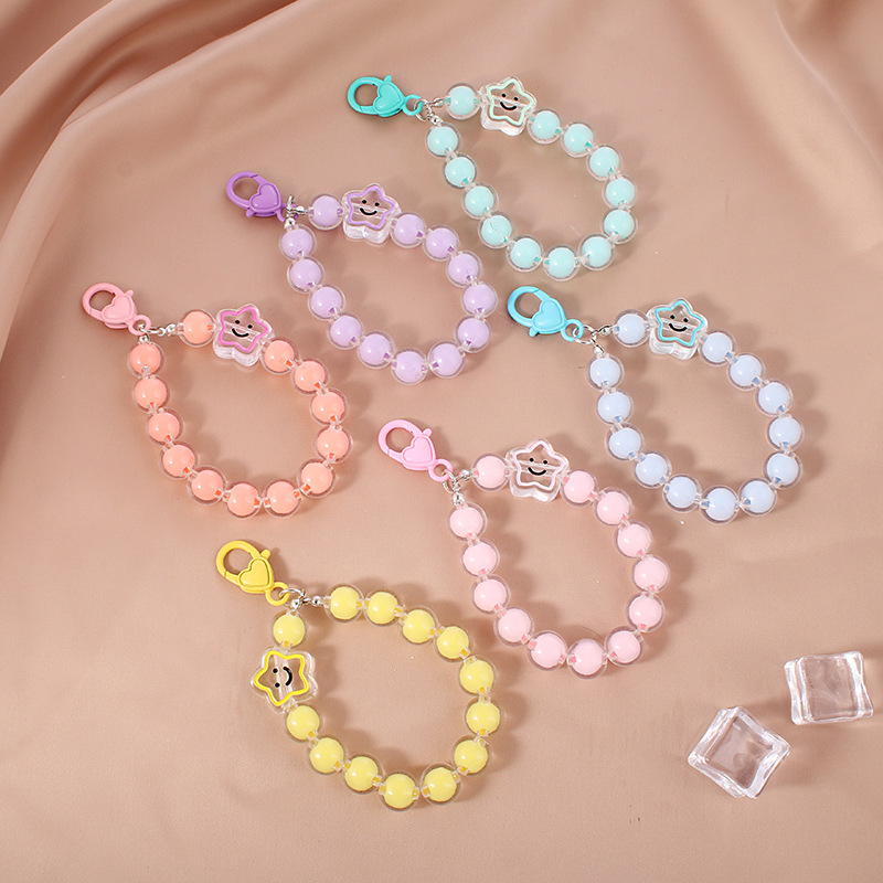 クリエイティブdiy大粒手作りビーズキーホルダーかわいい五角星少女心バッグペンダントプレゼント卸売り