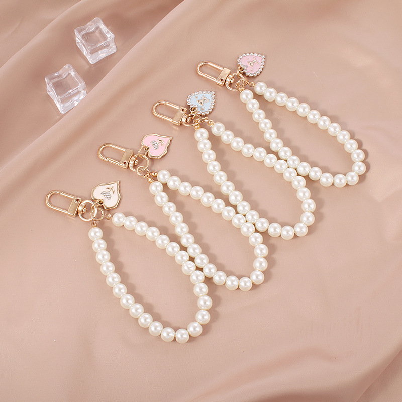 新商品の創意は真珠の花の愛の金属の看板の自動車のキーホルダーのペンダントの女性のカバンの装飾の小さい贈り物をまねます。