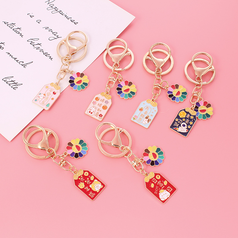 新商品の合金の油を垂らしたキーホルダーのペンダント柿の如意の美しい寓意の祝福の言葉の自動車のカバンのペンダントの装飾