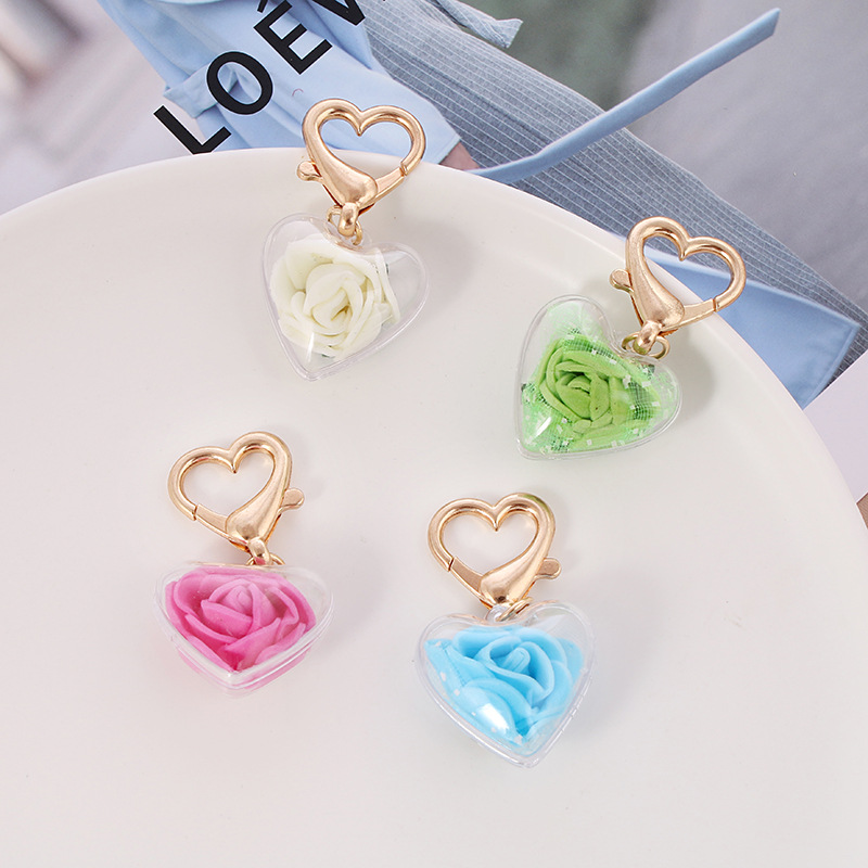 新しいアイデアの愛のバラのキーホルダーの少女の心の包みのペンダントの一生の愛のキーチェーンの小さい贈り物は贈呈します。