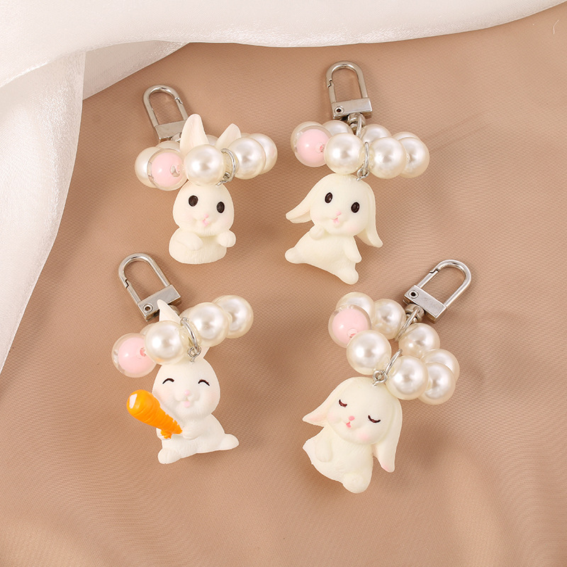 新しい真珠の車のキーホルダーのペンダントの創意樹脂のかわいいウサギのカバンのペンダントの部品の贈り物
