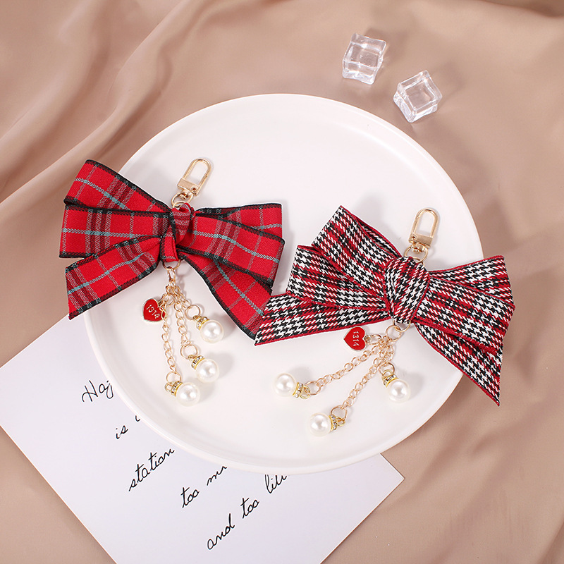 新しい格子のリボンの蝶結びの鍵は愛の真珠のチェーンの少女の心の包みのペンダントの小さい贈り物の装飾を掛けます。