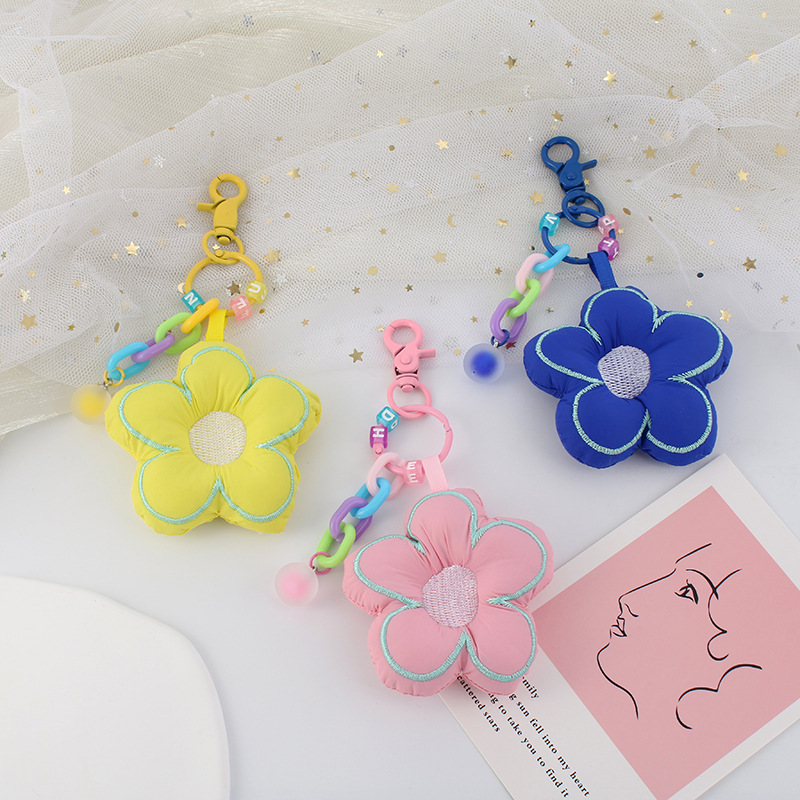 新しいアイデアの布芸のかわいい花のキーホルダーはカラーの球形の口を開けます。